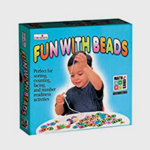Fun with Beads contains 80 beads in different colours and shapes and four thick laces. With the help of the provided material, children are engaged in different activities that enhance their eye-hand coordination and fine motor skills. A child may learn number skills through counting, counting by groups, sorting by colour, sorting by shape, one-to-one correspondence and pattern making. Fun with beads also develops gross motor and necessary mental skills of the child.