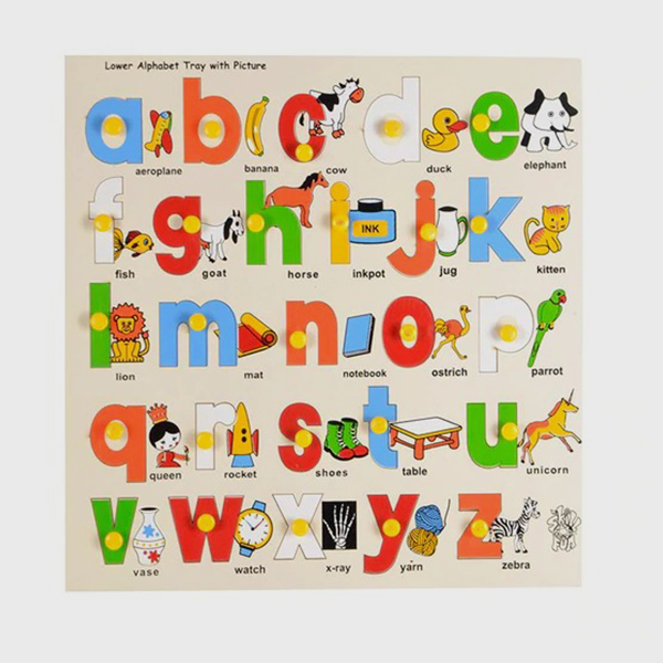 Children will love identifying lower alphabets with their corresponding objects, while they develop motor skill.