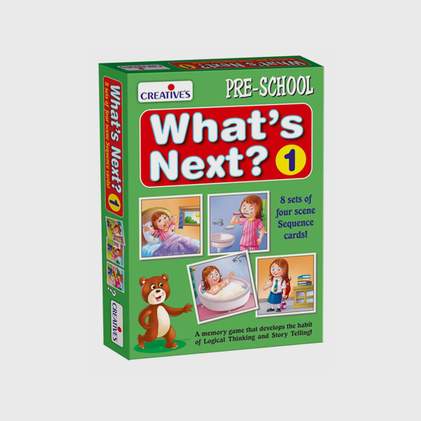 These bright, sturdy, easy-to-handle cards develop logical thinking, sequencing and storytelling while reinforcing important communication skills. The game includes 8 sets of four large and durable cards each (32 cards) and an Activity Guide. The child is required to sort each set, explain each card of every set, arrange them in proper sequence to narrate the short story/ happening in his/her own words. This way the child improves pre-reading skills in a playful manner.